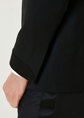 Siyah Şal Mat Saten Yaka Smokin Ceketi