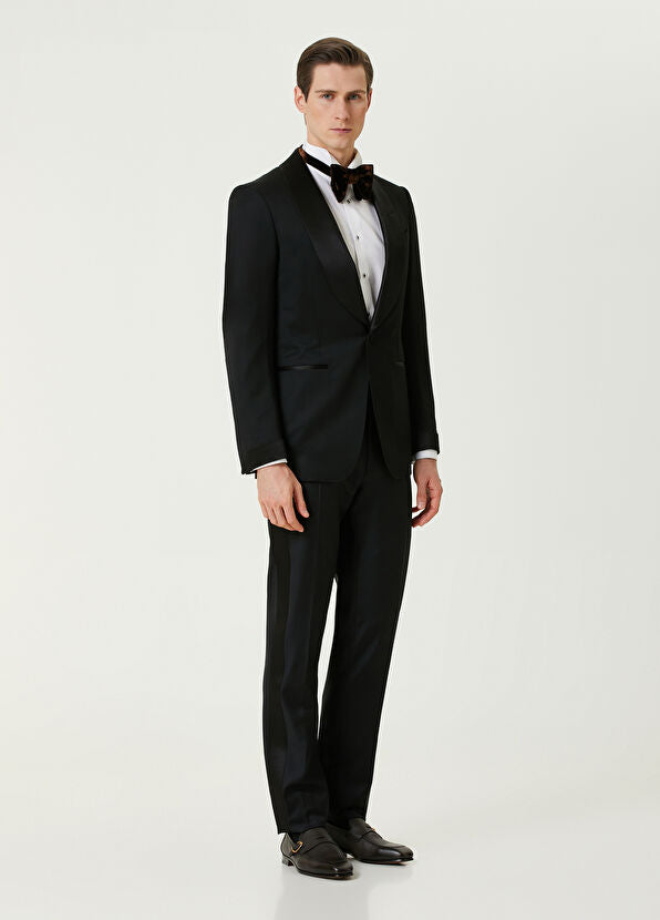 Papillone'nin kendi ustalarının ellerinde dikilmiş %100 yün yerli kumaş ile dikilmiş modern smokin.